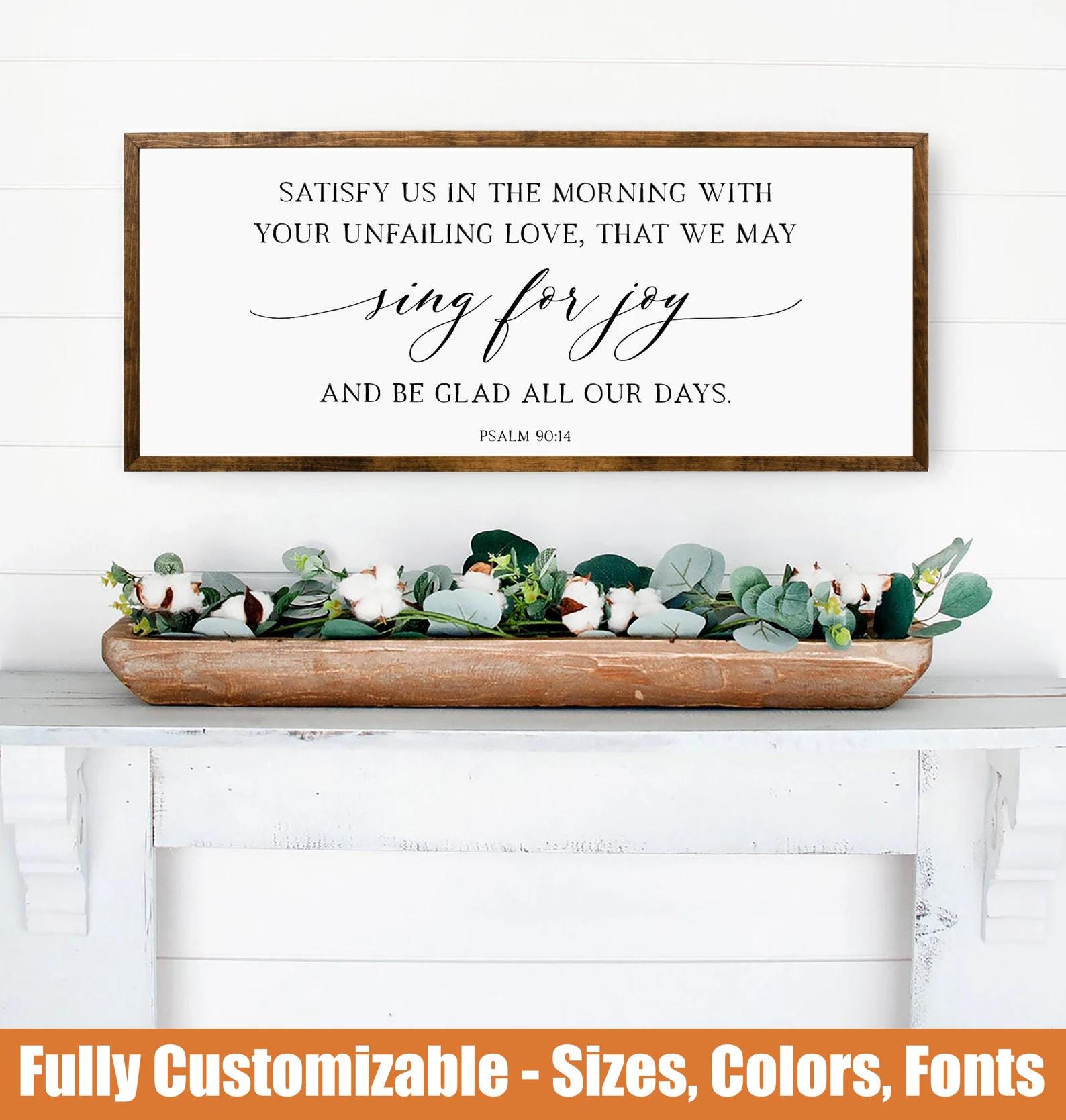The Psalm 90:14 sign is an impactful gift, emitting a beacon of love and faith. Itโ€™s an ideal choice for anyone looking to gift a piece of timeless wisdom and divine tranquility.