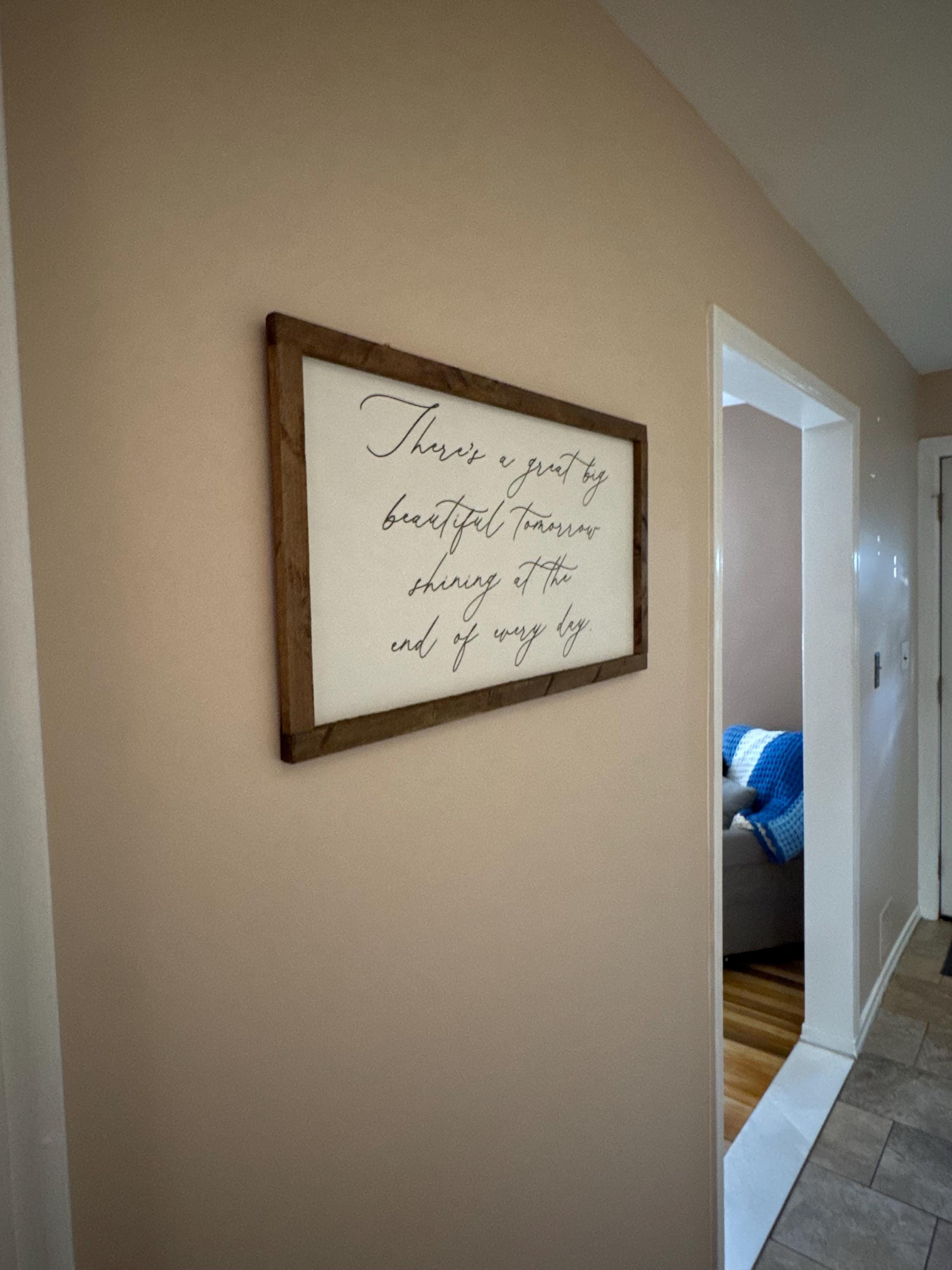 All of our signs are safe and easy to hang. Each sign comes with a built-in hanging system and easy to follow instructions. You will also be provided with nails to easily hang your sign on the wall.