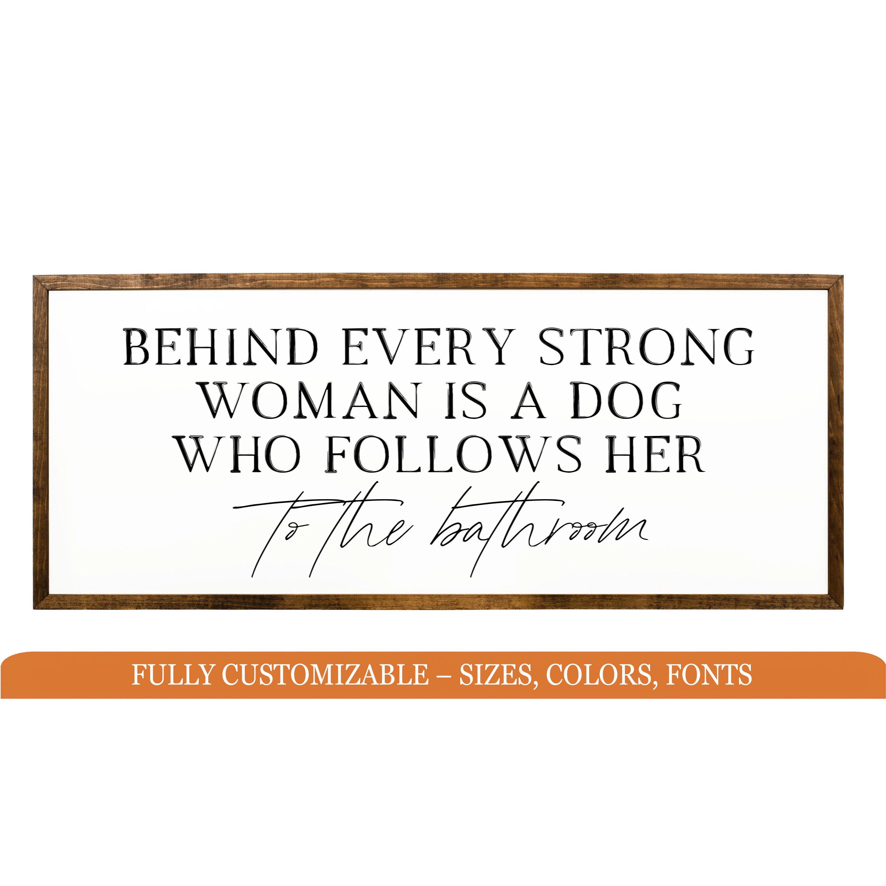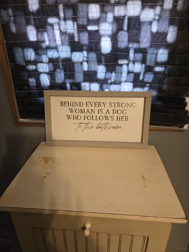 "Behind every strong woman is a dog who follows her to the bathroom"
