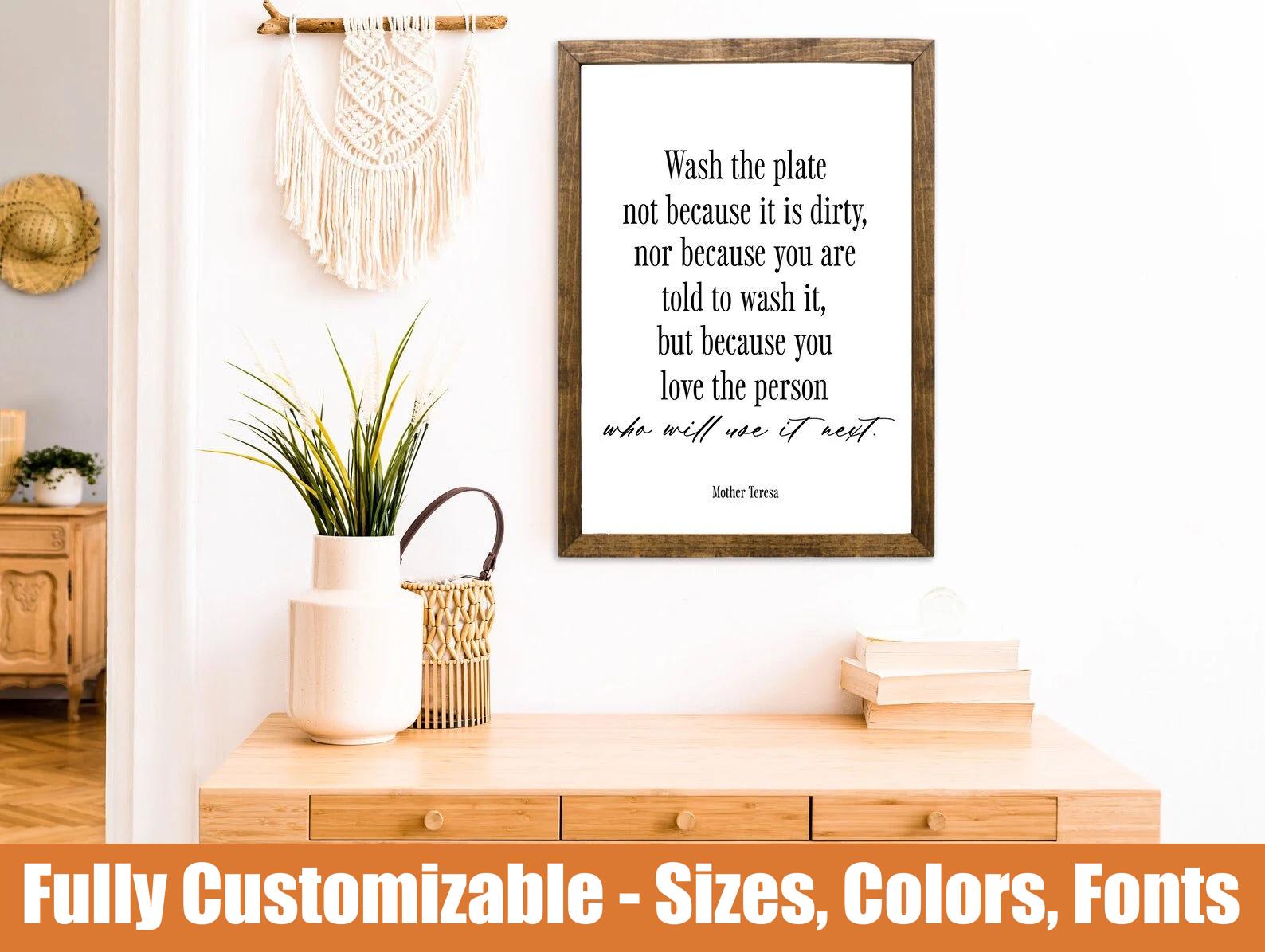 "Wash the plate not because it is dirty Sign - Mother Teresa Quote"