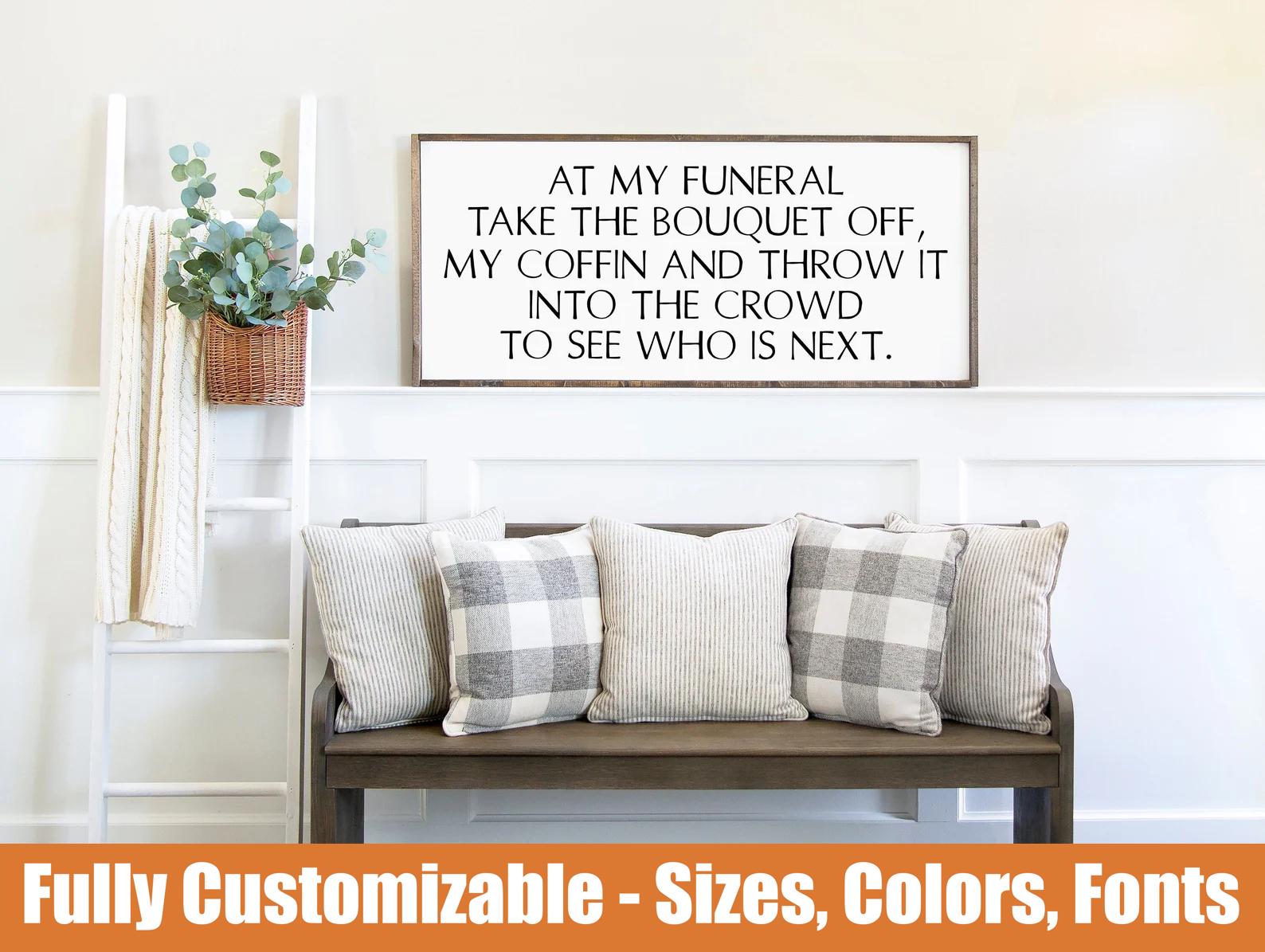 "at my funeral take the bouquet off, my coffin and throw it into the crowd to see who is next"