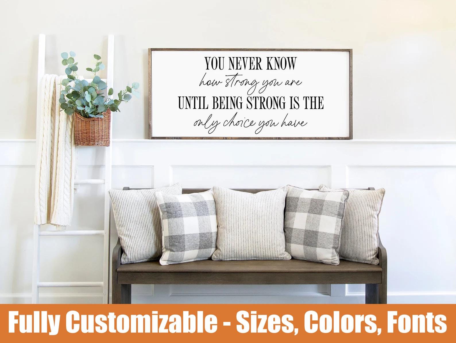 We use a high-quality stain and high-quality paint on both the wooden frames and lettering respectively.