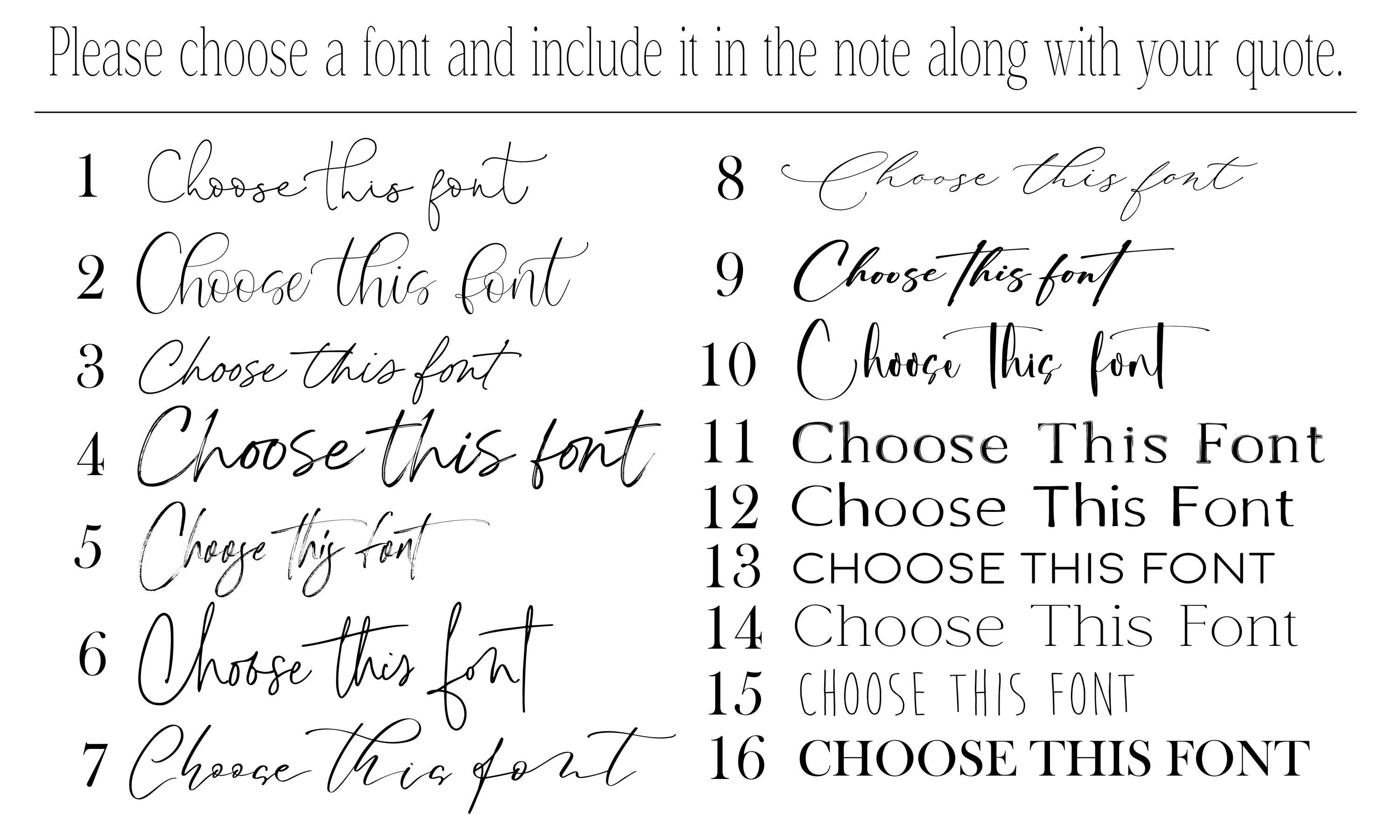 Our signs are made to order with a processing time of 3-5 business days. We offer free FedEx Ground Shipping, and expedited FedEx Express Overnight Shipping is available for an additional fee (price varies by size). Please include your quote and preferred font in the personalization area, or feel free to contact us directly.