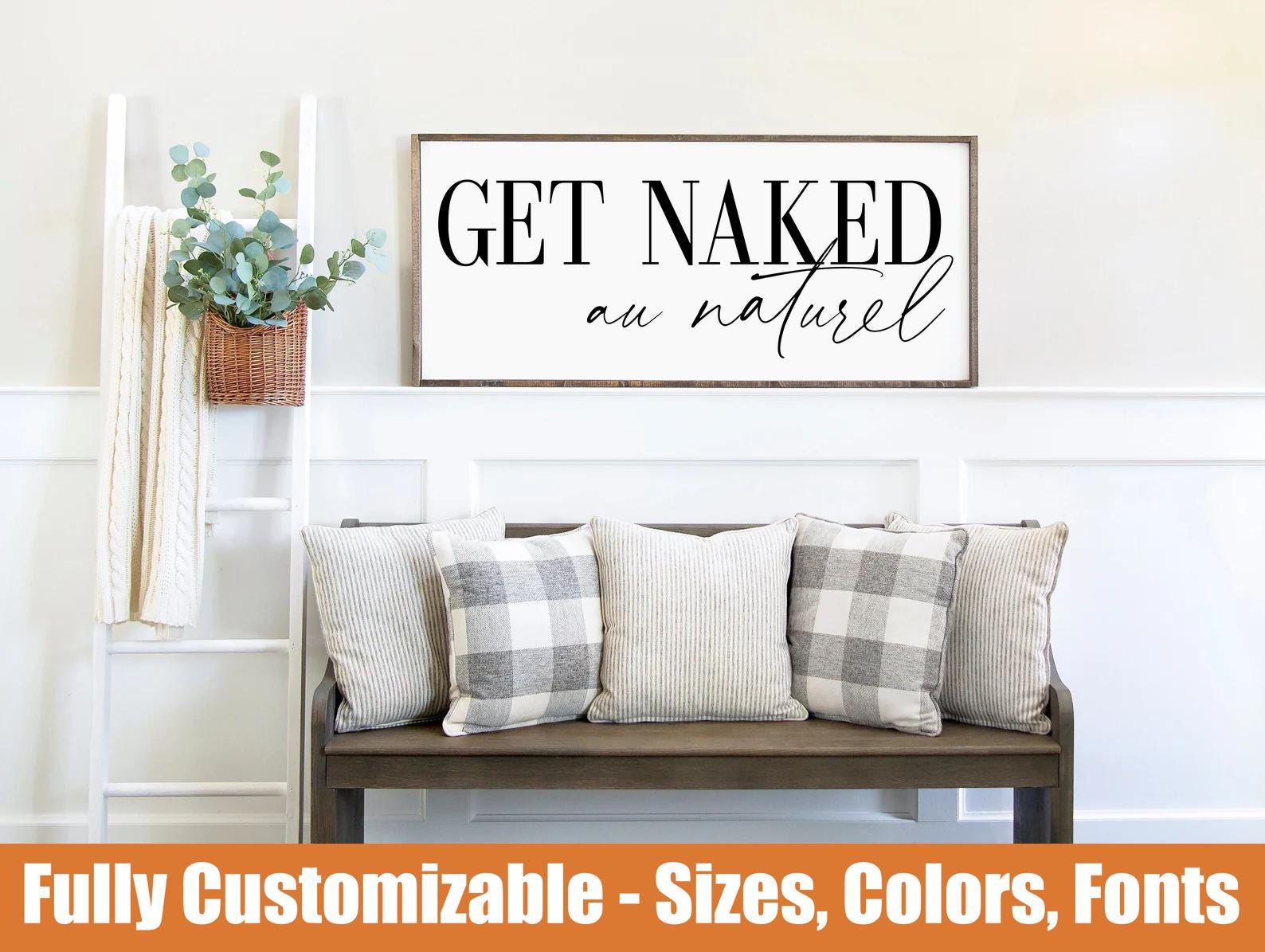 Get Naked au naturel, farmhouse bathroom wooden sign