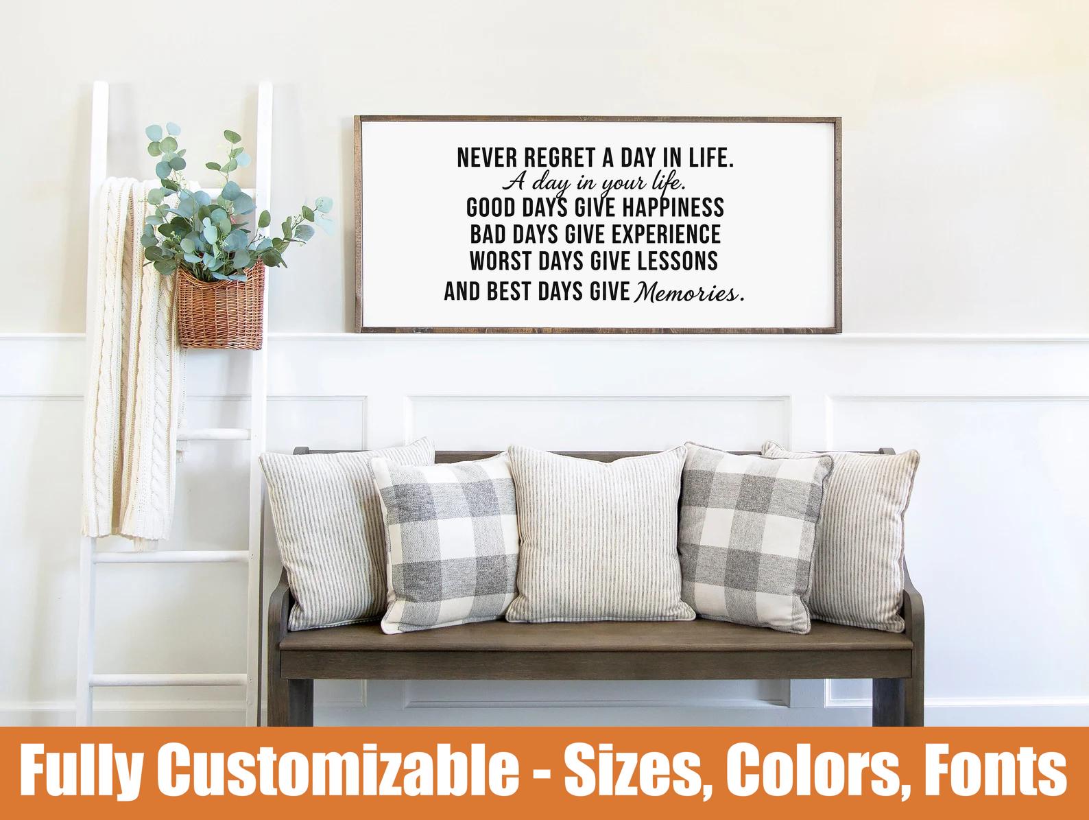 Never Regret a Day, Farmhouse entryway wooden sign