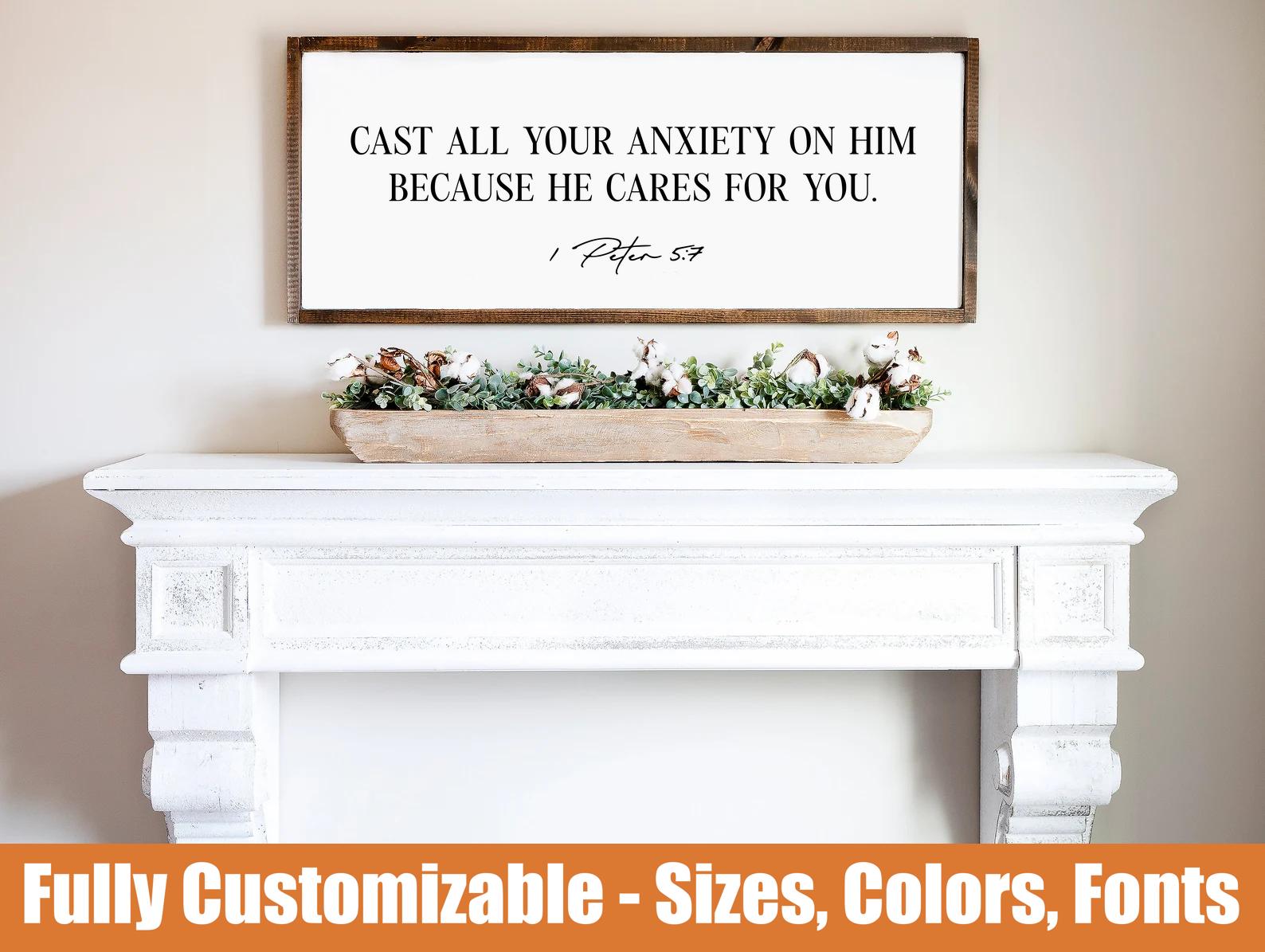 Peter 5:7 Cast All Your Anxiety wooden sign, Christian farmhouse decor