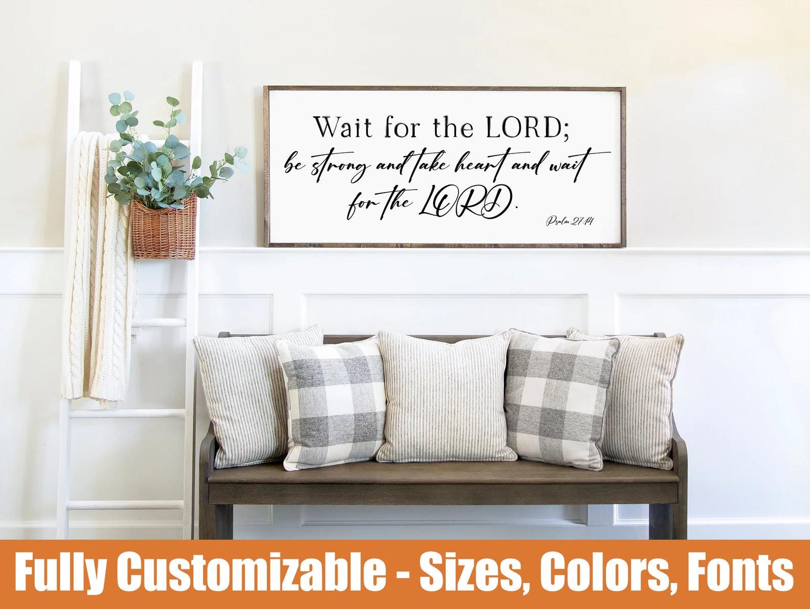 Psalm 27:14 Wait for the Lord, Christian farmhouse wooden sign