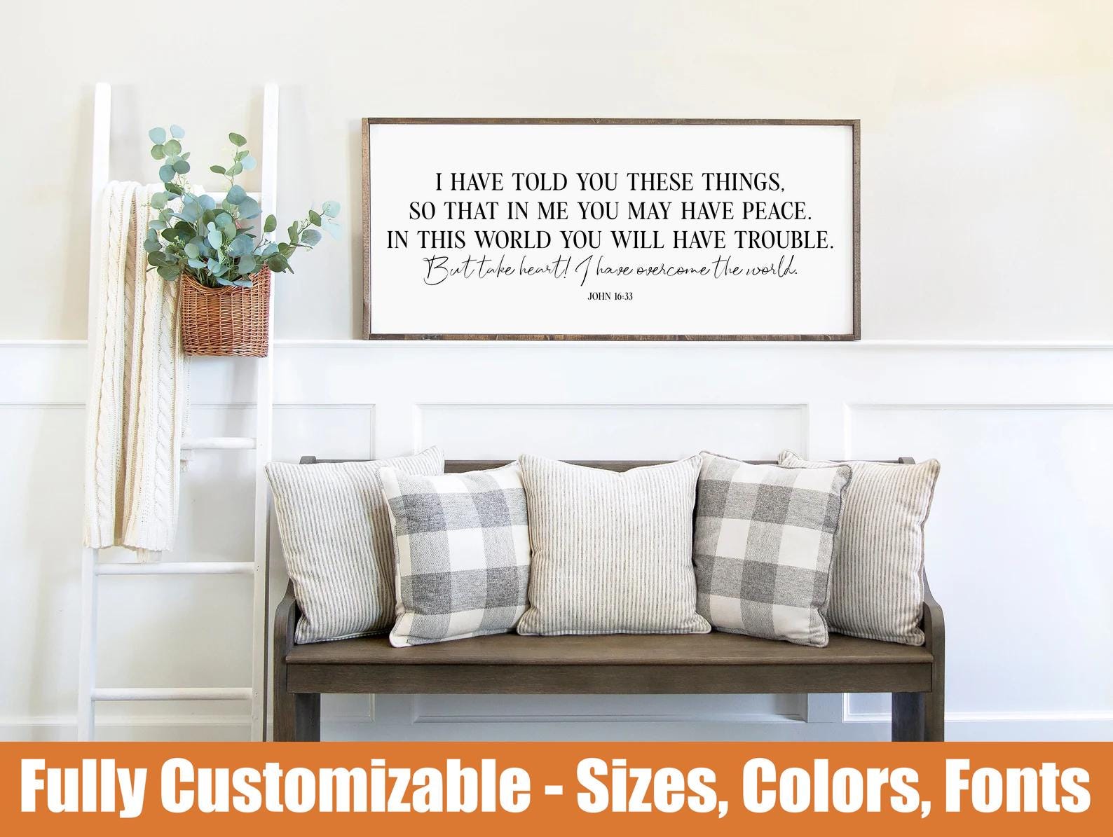 John 16:33 Take Heart I Have Overcome, Christian farmhouse wall sign