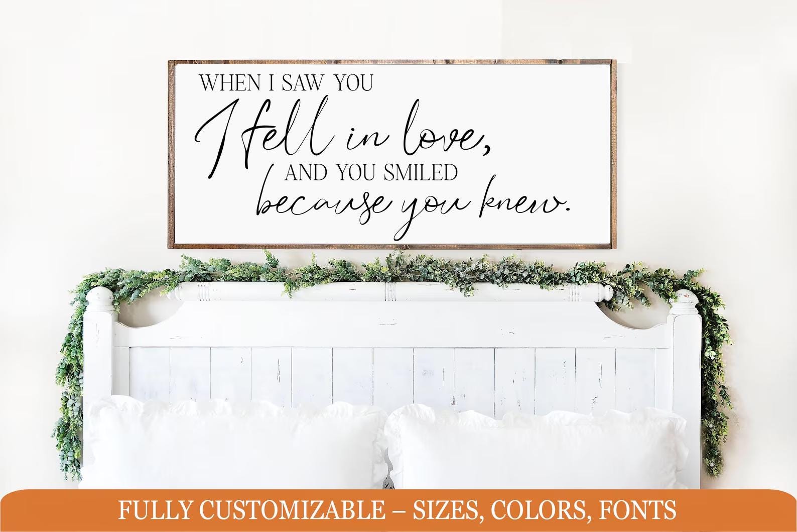 When I Saw You I Fell in Love, romantic bedroom wooden sign