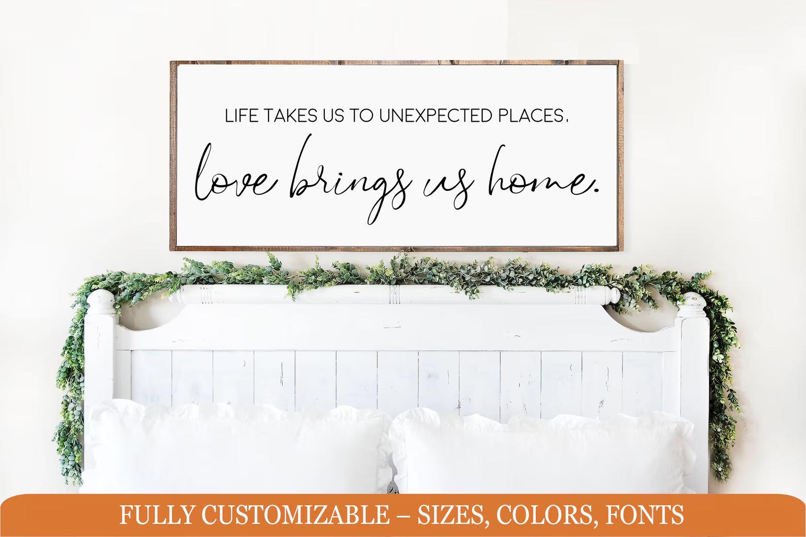 Love brings us home, farmhouse bedroom wooden sign