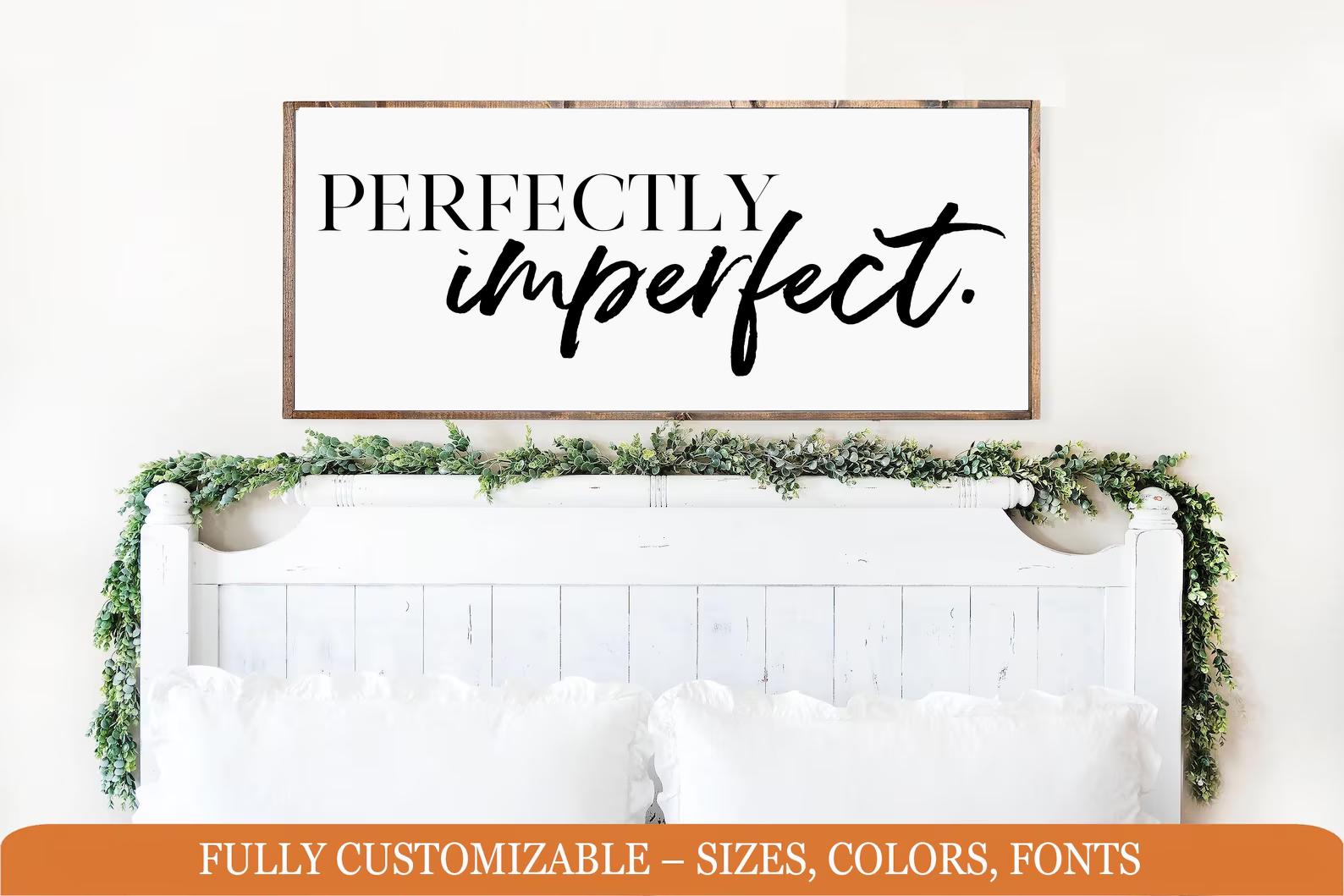Perfectly Imperfect, Farmhouse bedroom wooden sign