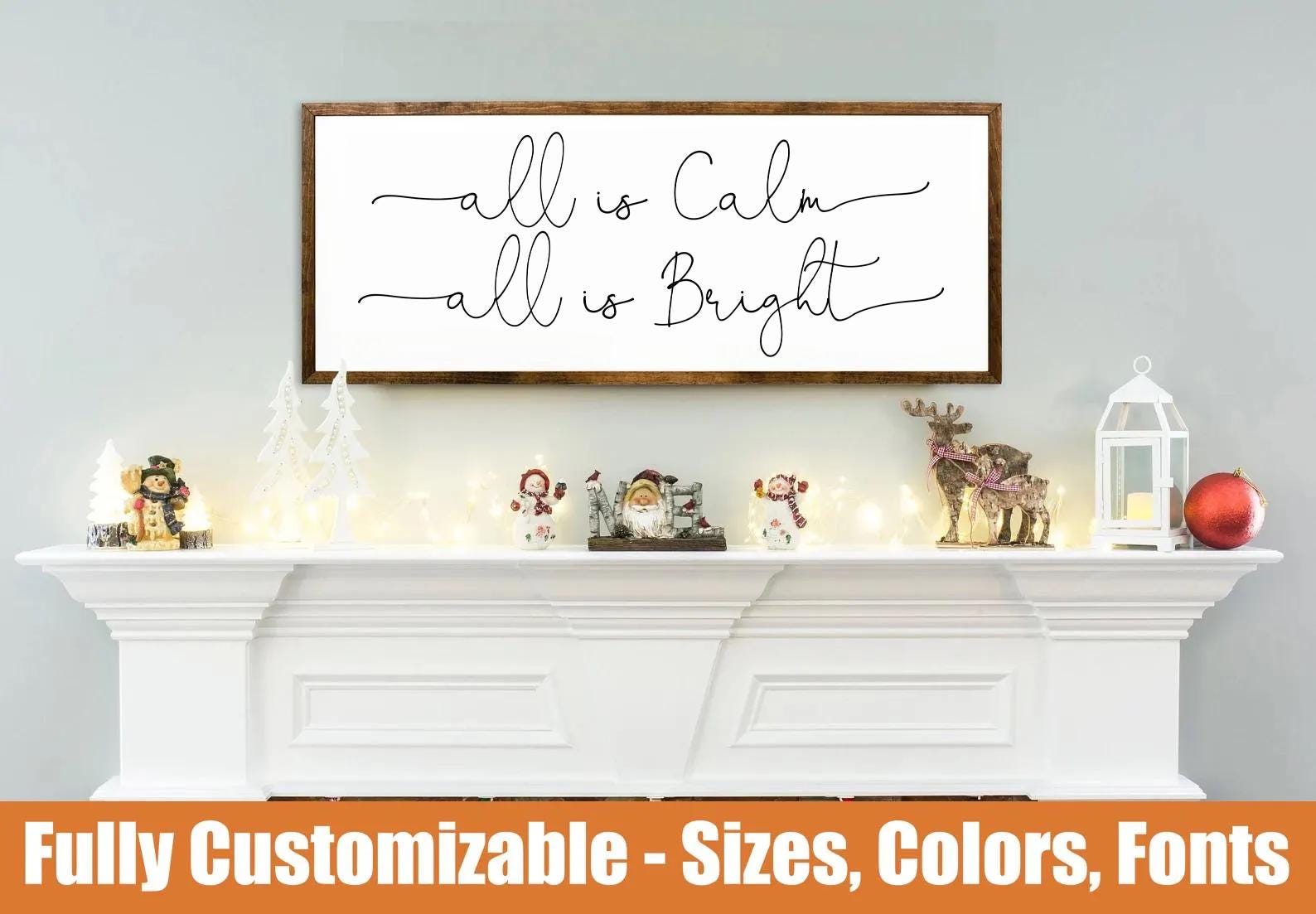All Is Calm All Is Bright, Rustic Christmas wooden sign