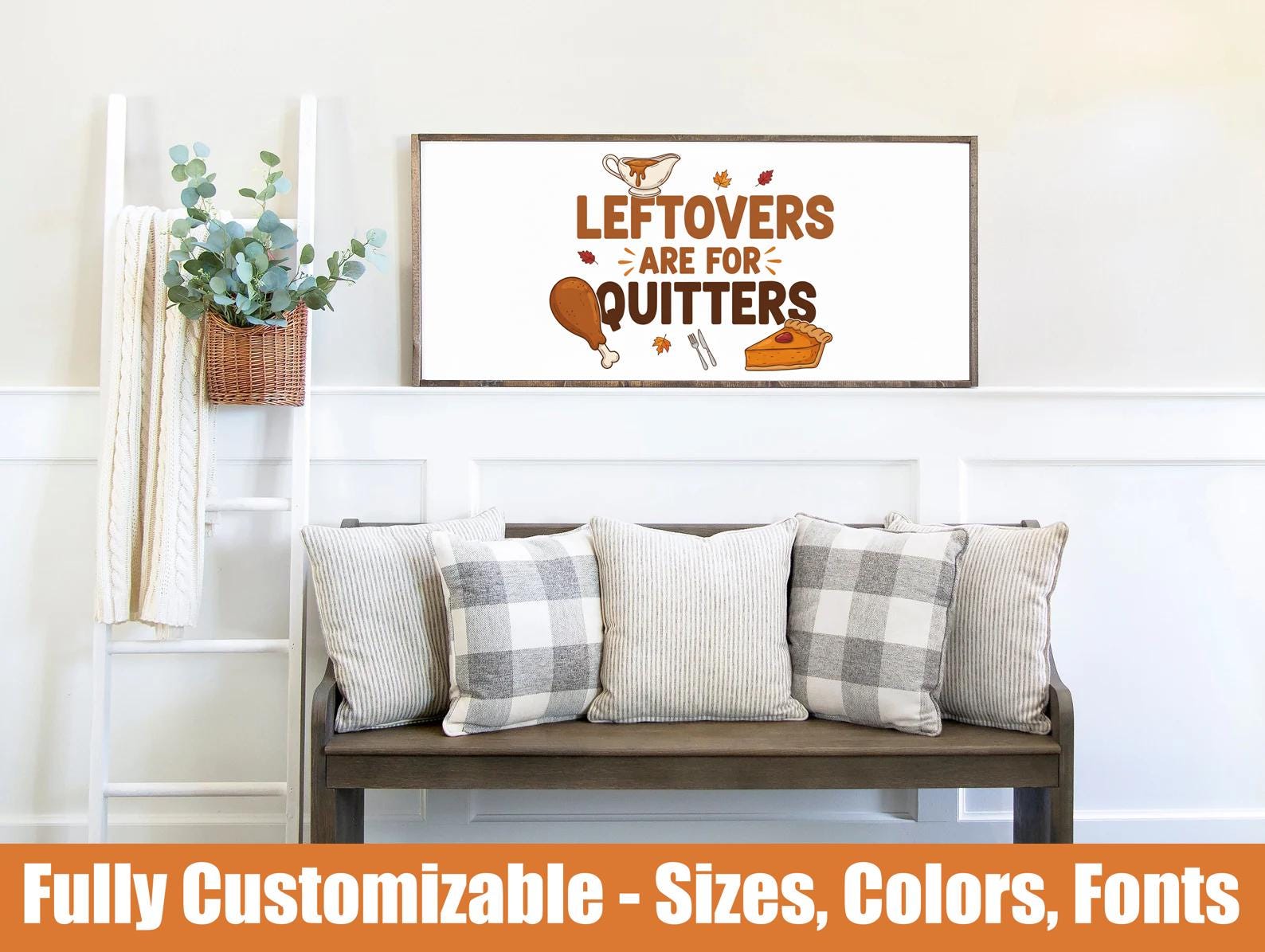 Leftovers Are For Quitters, Funny Thanksgiving kitchen wooden sign