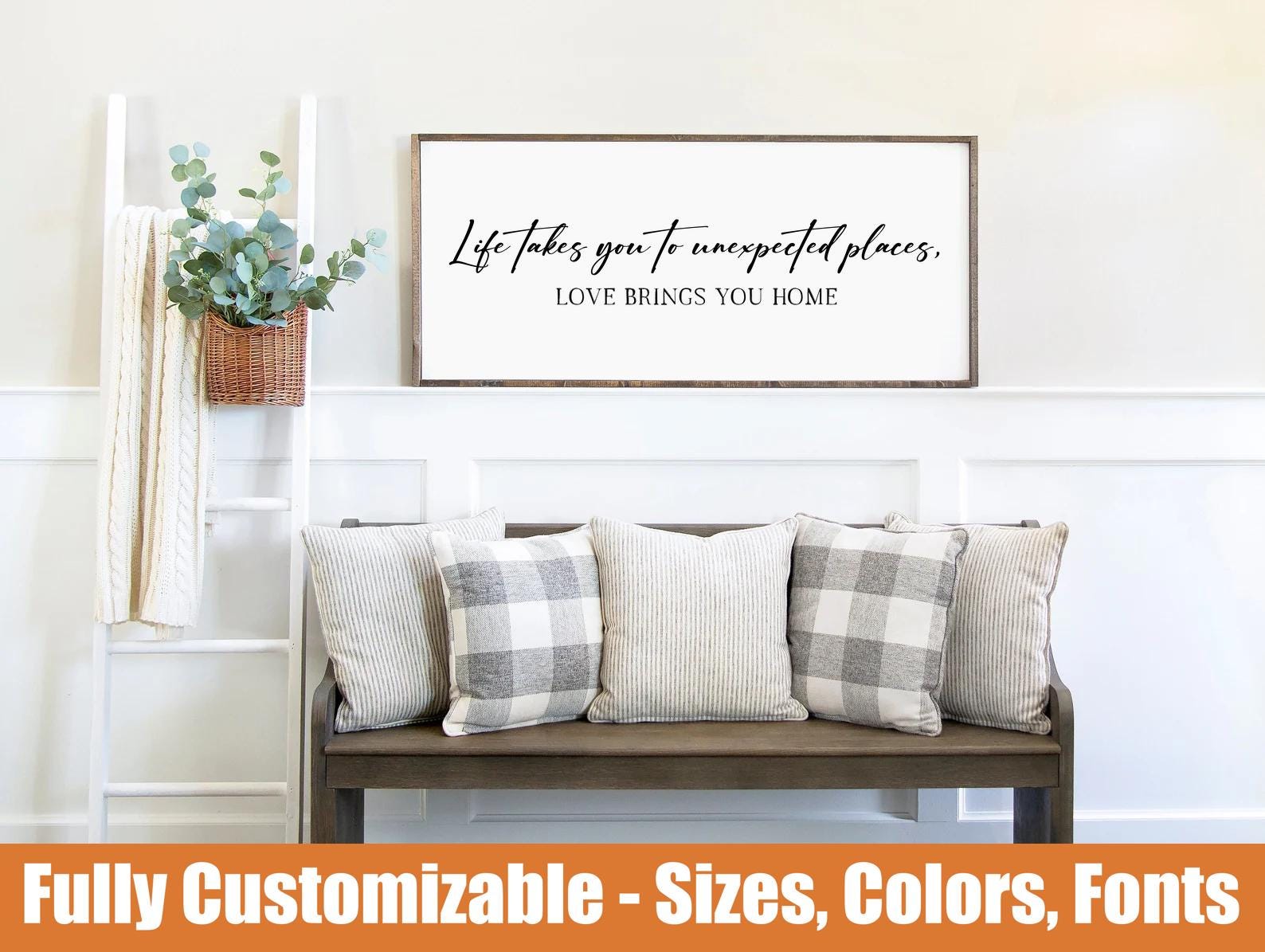 Life takes you to unexpected places, farmhouse entryway wooden sign