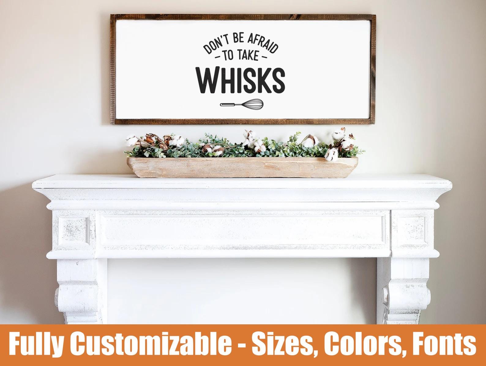 Don't Be Afraid to Take Whisks, funny farmhouse kitchen wooden sign