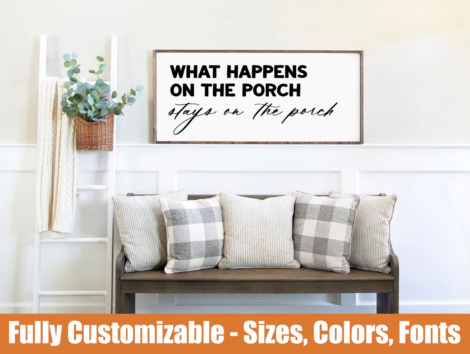What Happens on the Porch, rustic wooden porch sign