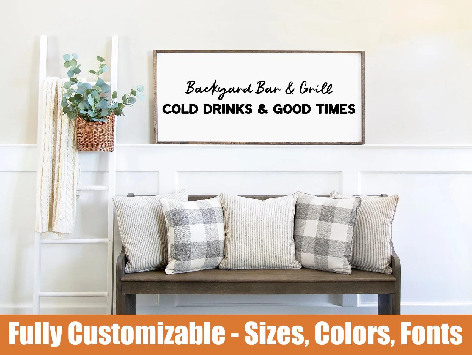 Cold Drinks and Good Times, Custom backyard bar wall sign