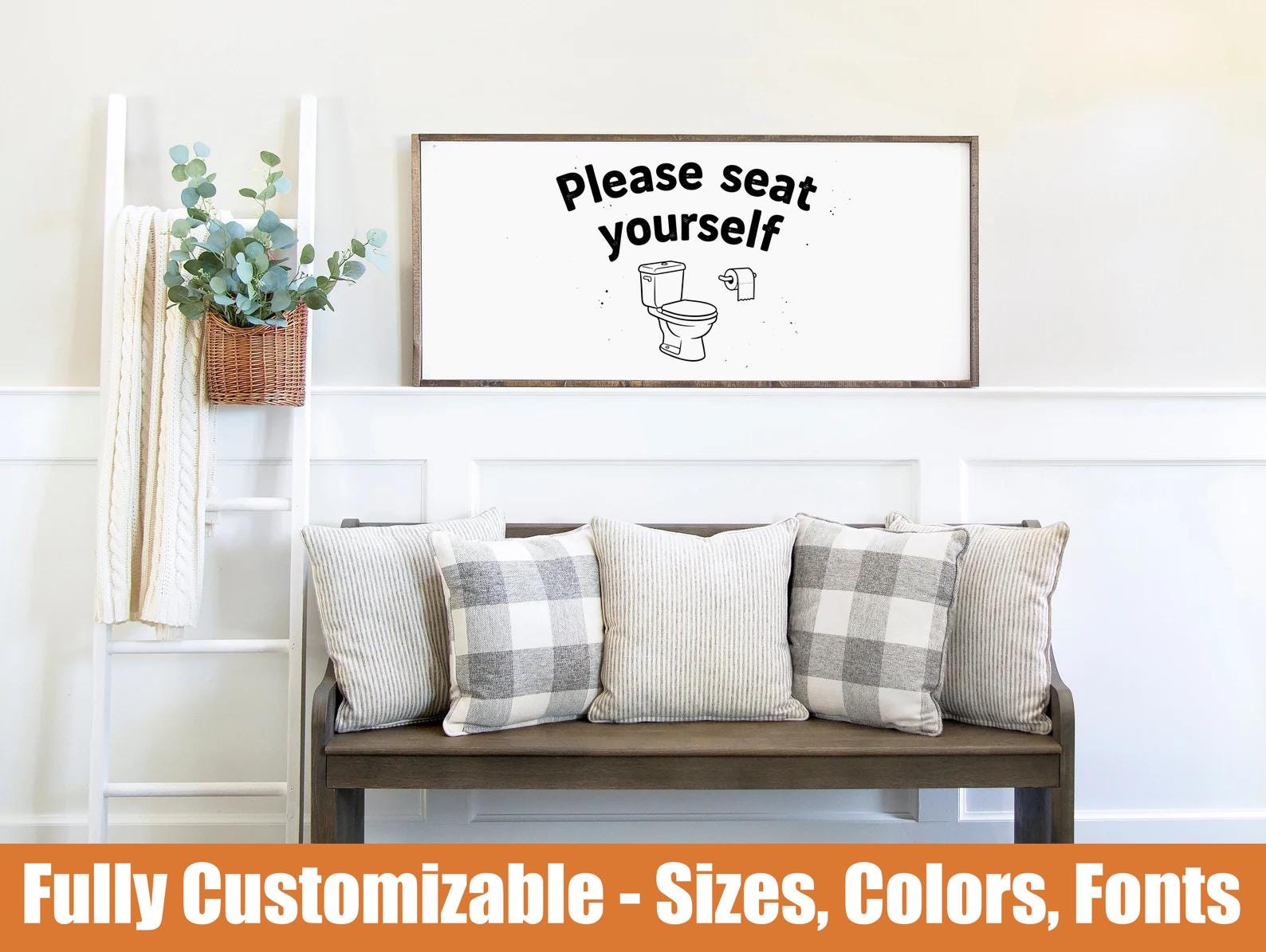 Please seat yourself, funny farmhouse bathroom sign